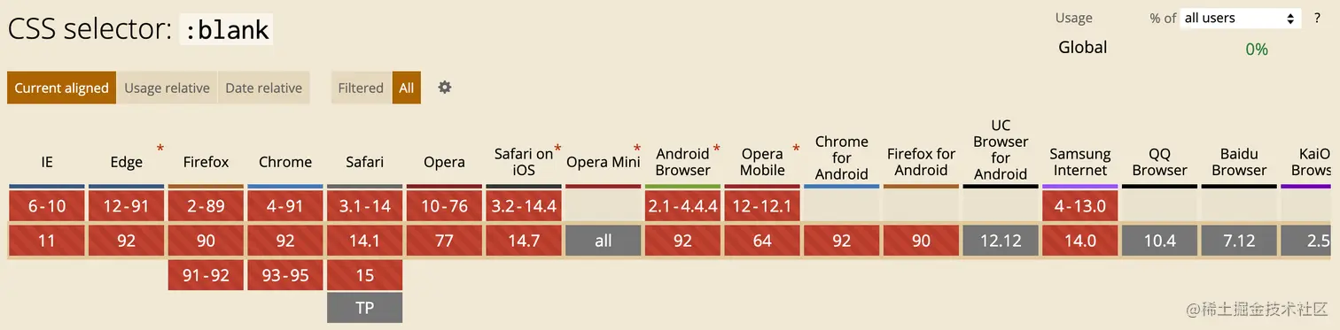 :blank的浏览器支持程度
