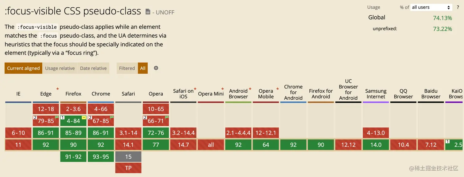 :focus-visible的浏览器支持程度