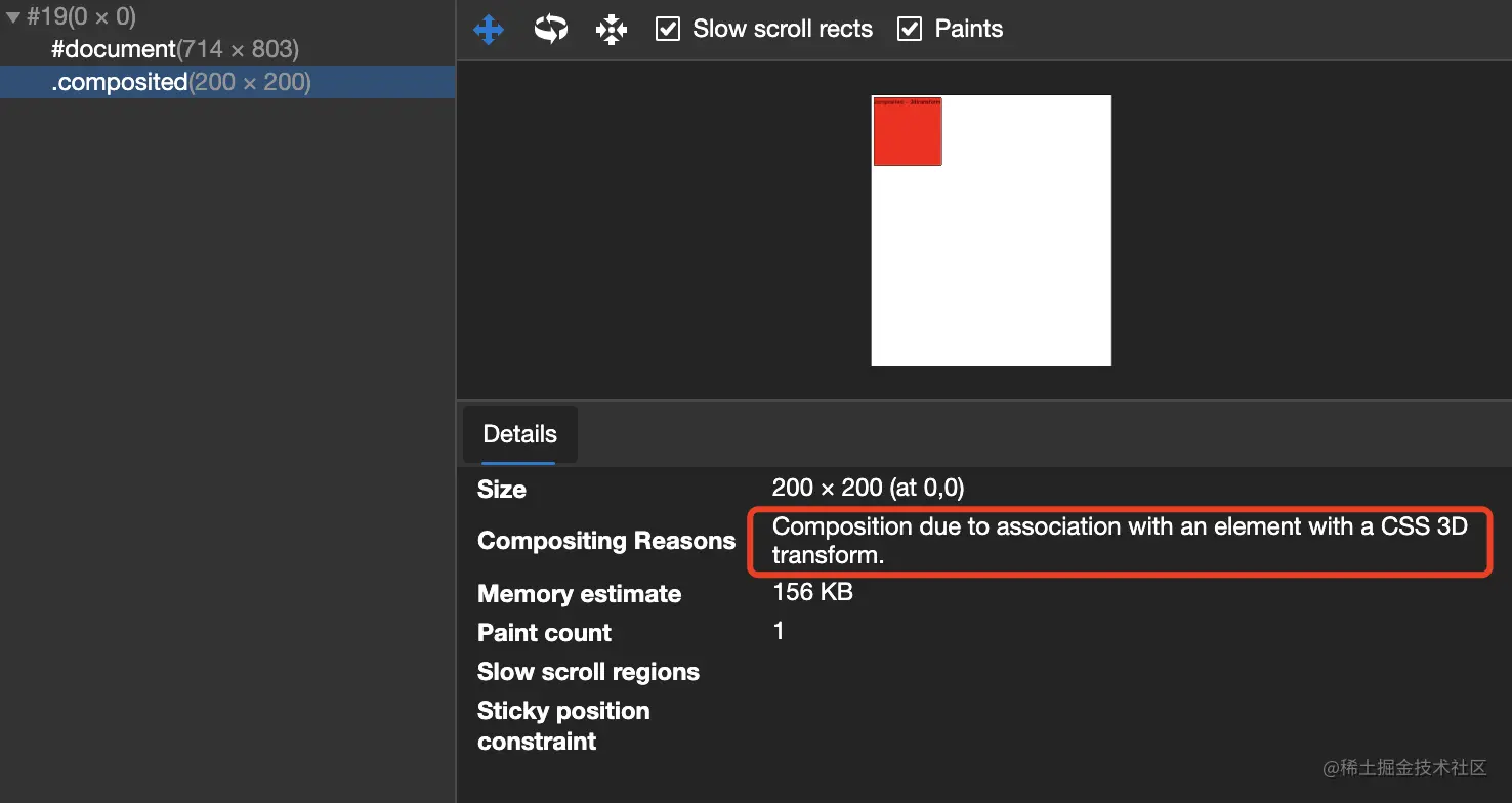 可以看到是因为使用的CSS 3D transform,创建了一个复合层