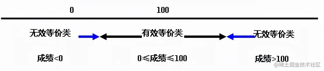 在规定了输入数据必须遵守的规则的情况下,可确立一个有效等价类(符合规则)和若干个无效等价类(从不同角度违反规则)