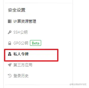 点击左边安全设置中的“私人令牌”,点击“生成新令牌”。