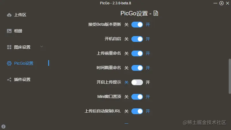 为了方便可打开开机自启,如果你对图片名称有要求,可以打开上传前重命名,默认会使用时间戳作为文件名。