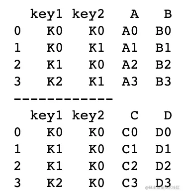 left = pd.DataFrame({'key1': ['K0', 'K0', 'K1', 'K2'],