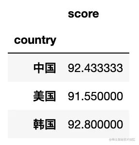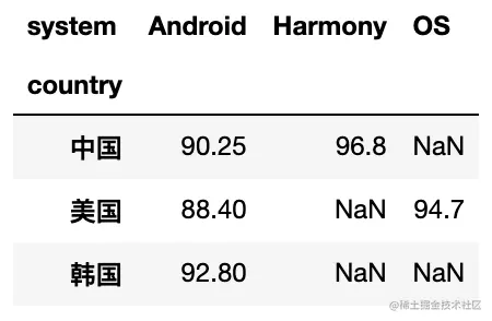 # 按country进行分组,system作为列名,score作为表中的值(重复的取均值),取对应的数据生成新的表