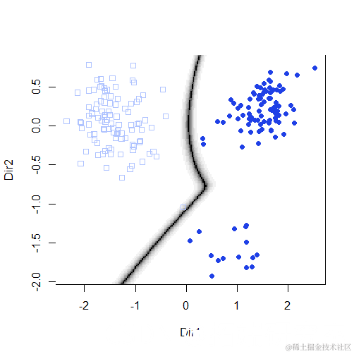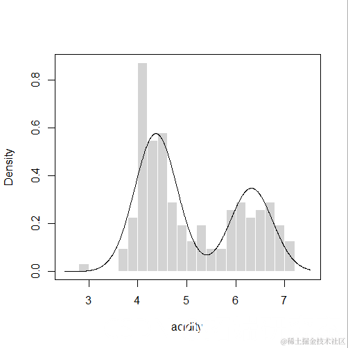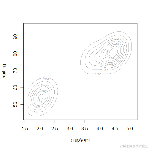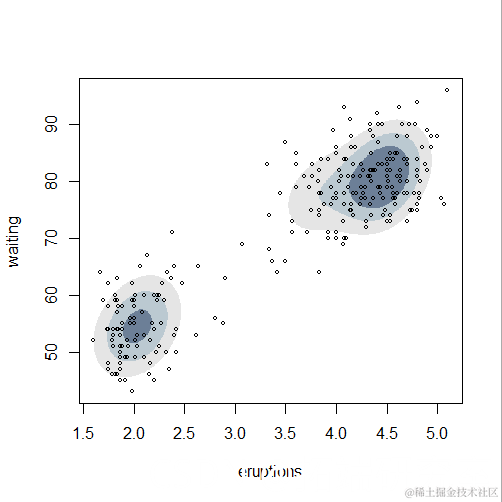 plot(mod5, "density",faithful)