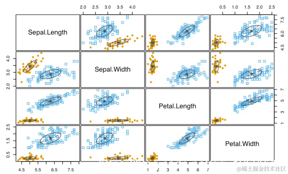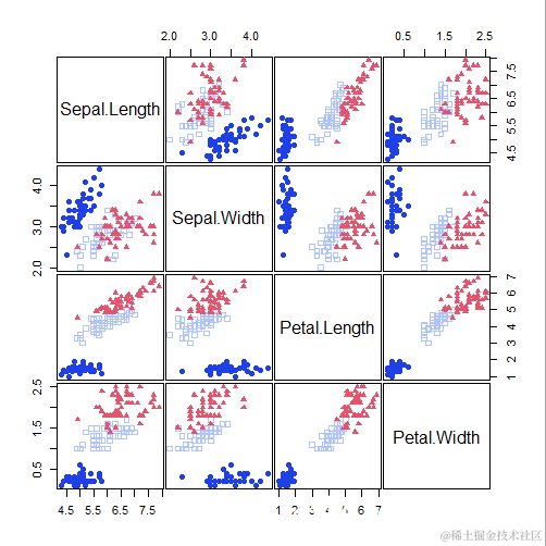 Pairs(iris[,-5], Species)