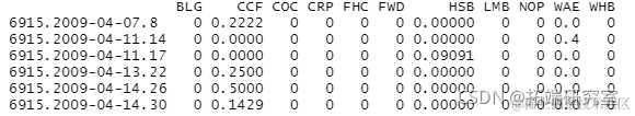 首先,我将带入数据,这是一个物种相对丰度的矩阵。列是物种,每行是一个观测值。下面是数据的浏览