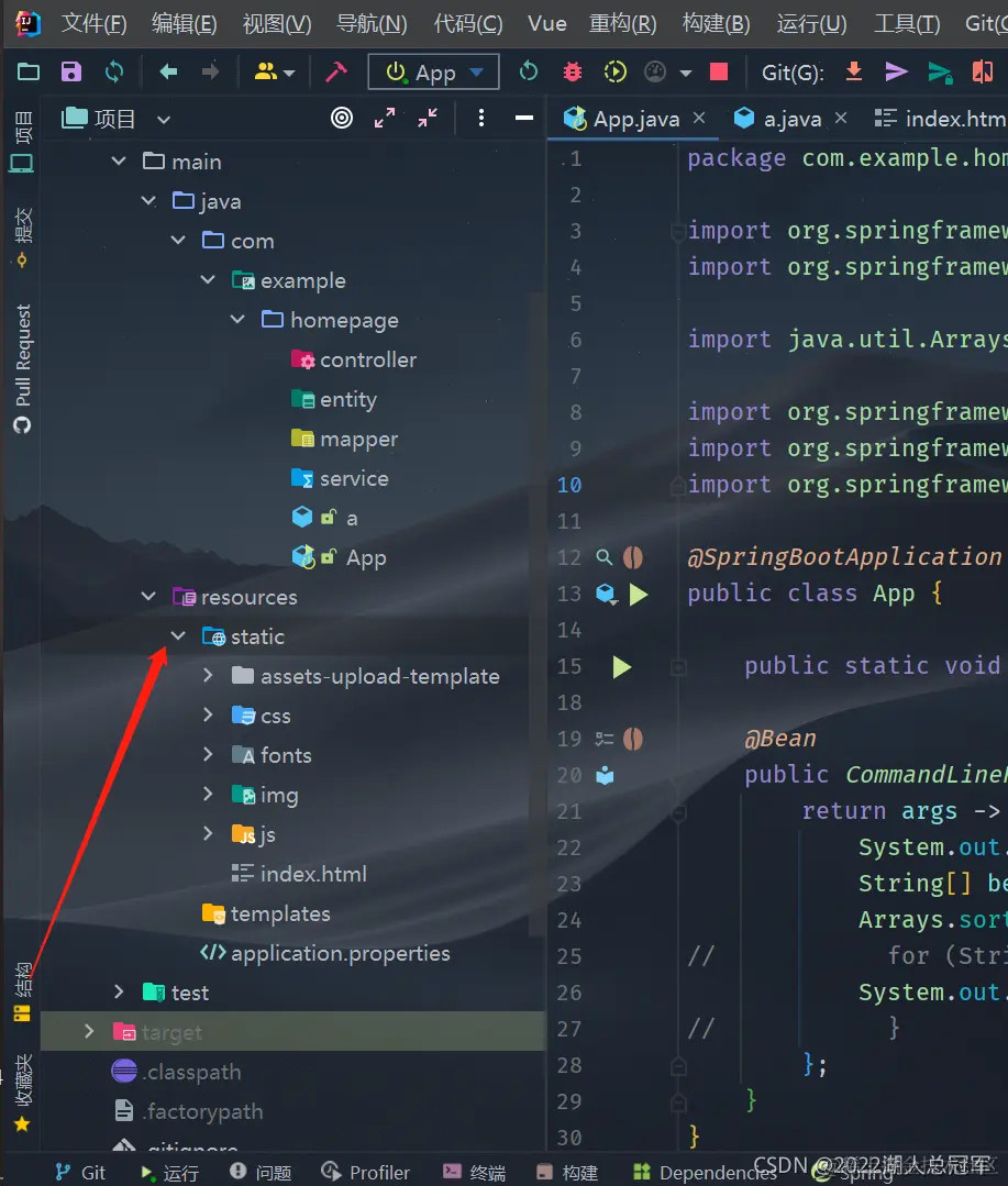 将刚才从dist复制的文件粘贴到static里面