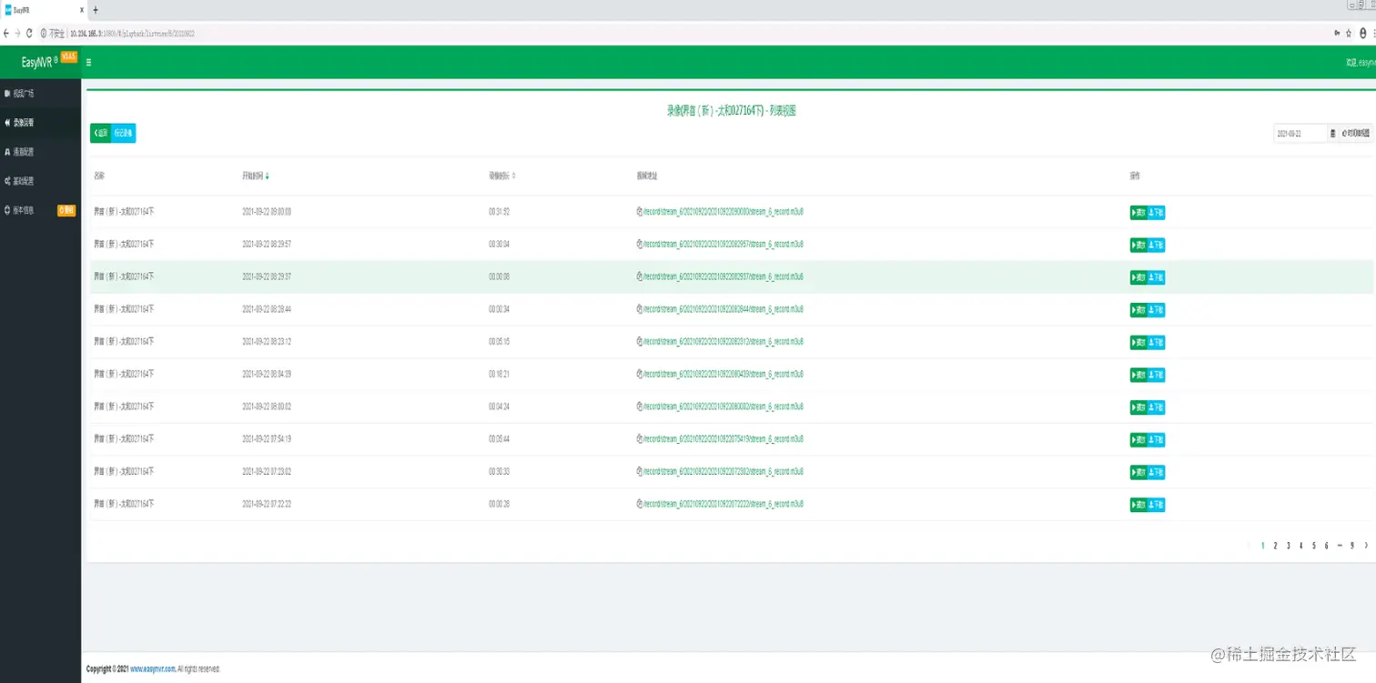 通过上图列表模式我们发现,录像是片段的,不是一个完整的录像,这个是由于软件在录像的过程中,需要定时间段来进行录像的分段,以此来满足录像是片段的,方便后面的下载和播放,以及可以更好的进行录像存储。