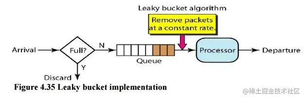 漏桶算法可以通过一个队列来实现,如下图所示:
