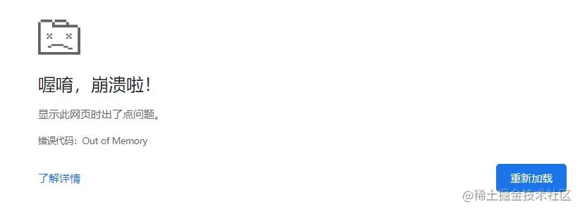 导致崩溃的原因有很多种,此处我们排除网络问题后,猜测是视频播放后浏览器缓存没有及时释放,导致内存持续增长,待浏览器内存达到上限后,就会提示内存不足崩溃。