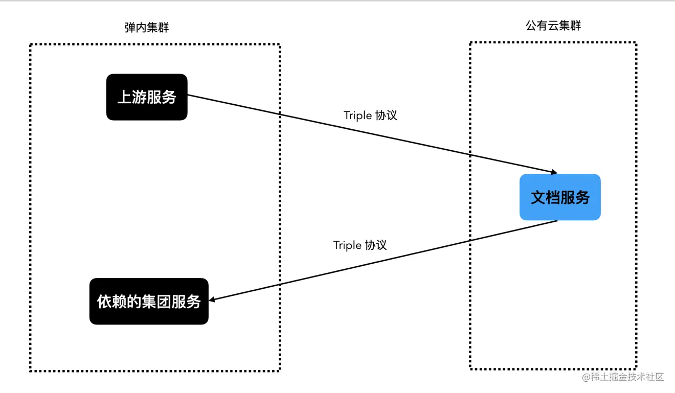 文档有一些对弹内服务的依赖,去除不掉。目前的做法,是文档自己把下游服务做一次封装,暴露出 triple 协议,供云上调用。