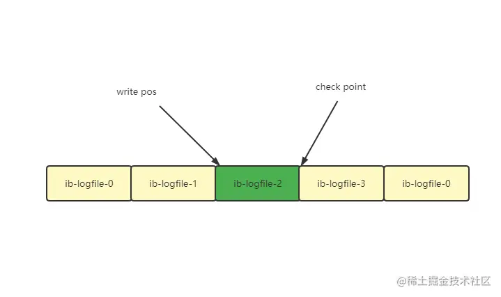 write pos将记录当前位置,同时向后移动,在ib-log-file-3文件末尾后,然后返回ib-logfilg-0文件开始写。