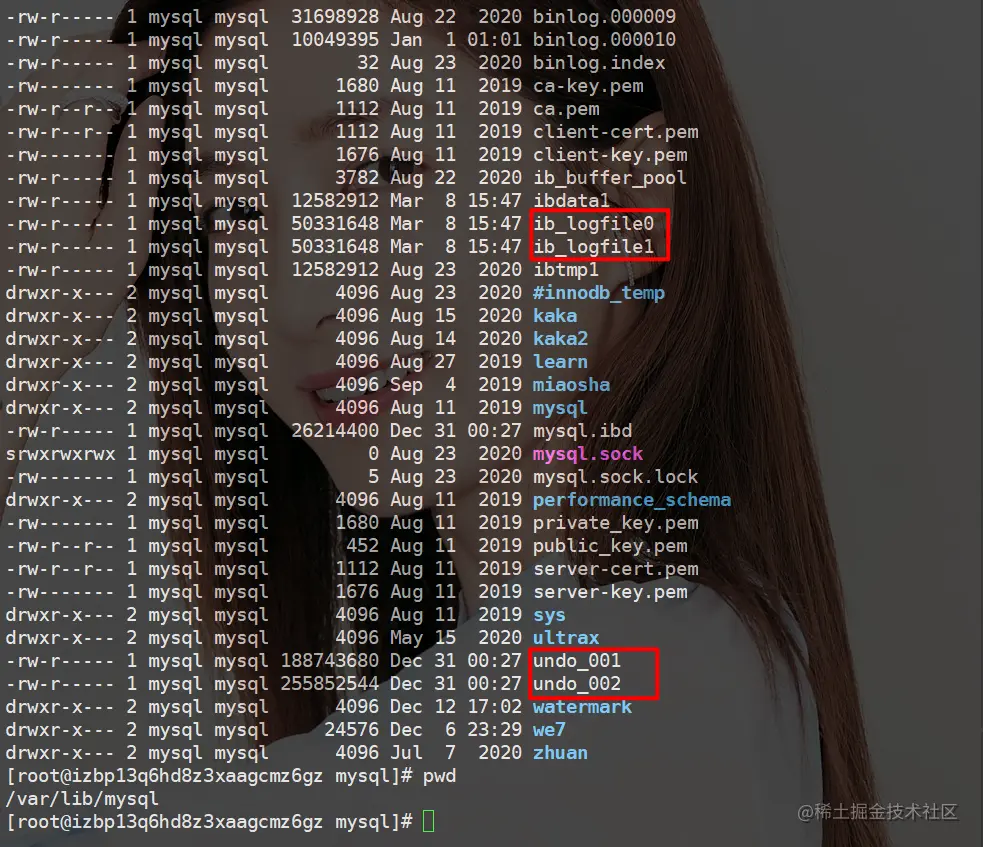 文件名为ib_logfile的是重做日志,undo开头的就是回滚日志,对于回滚日志后期进行详细的讨论。