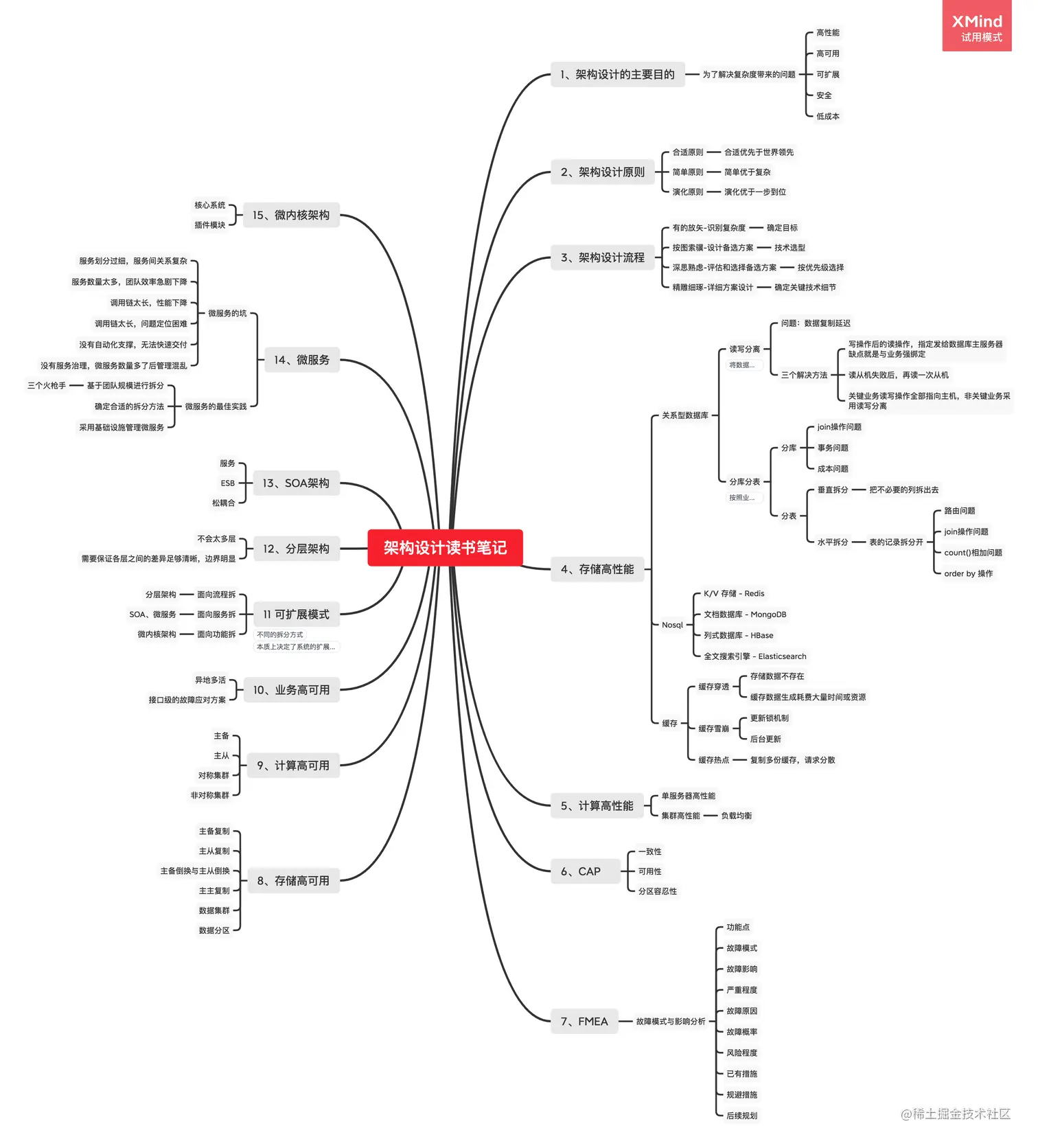 以下是书中的基本重点目录,我专门梳理了一遍 架构设计读书笔记.png