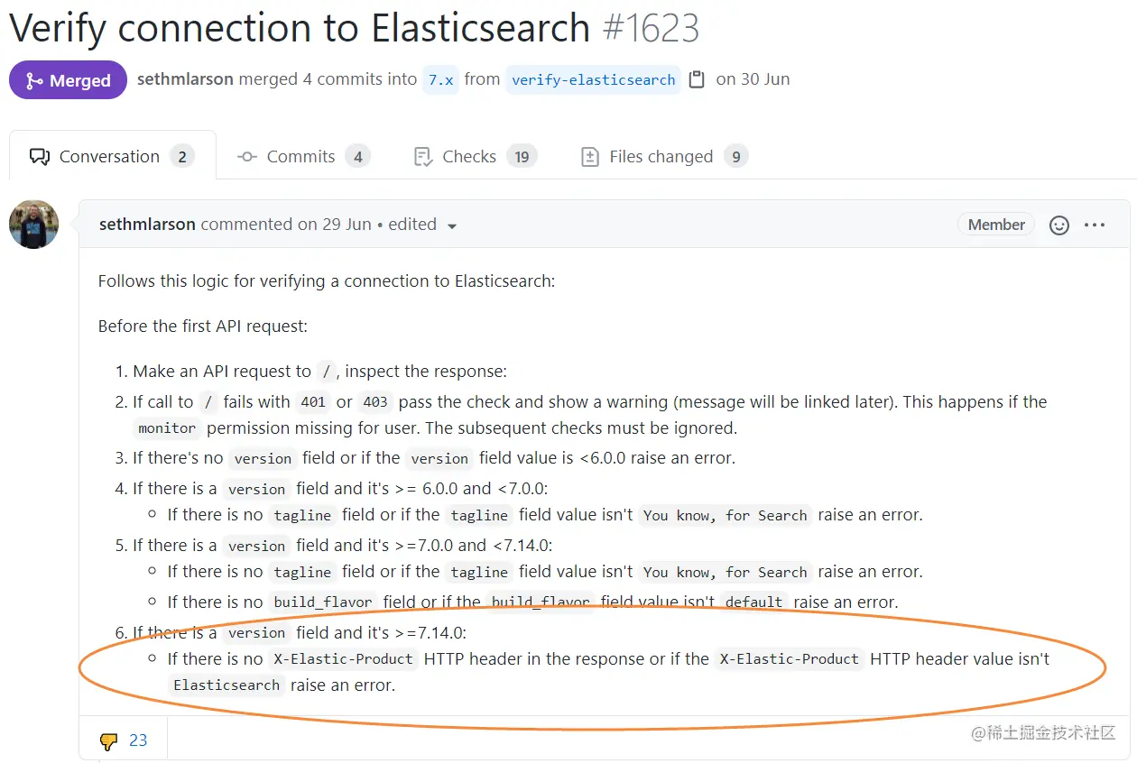 { "code": 400102, "message": "请求错误", "data": { "detail": "The client noticed that the server is not a supported distribution of Elasticsearch" } }