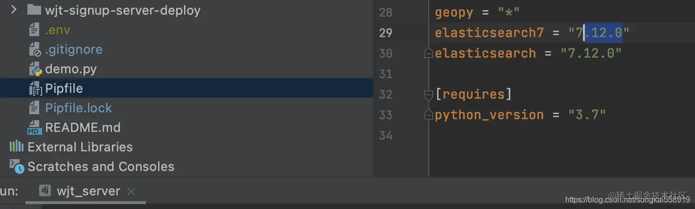 所以修改pipfile指定项目的es版本。