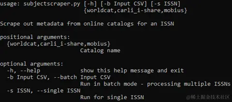 如果脚本在单ISSN模式下运行,输出将发送到屏幕。此输出包括搜索的ISSN、目录项URL、项标题和项目记录中的主题列表。