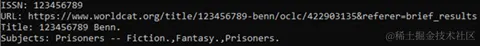- 搜索url-这是目录搜索URL的其余部分,没有base_url,这是用一个“{0}”参数化的,ISSN用于搜索例如,“/search?QT=WorldCat_org_all&q={0}”。