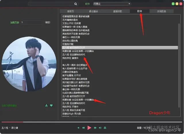 - 当前播放歌曲歌词读取显示功能