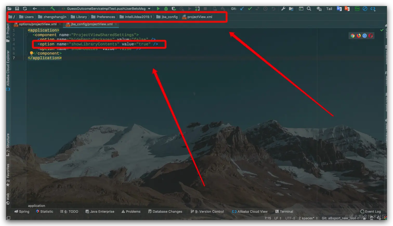 - 修改idea配置文件下的jba_config下的projectview.xml