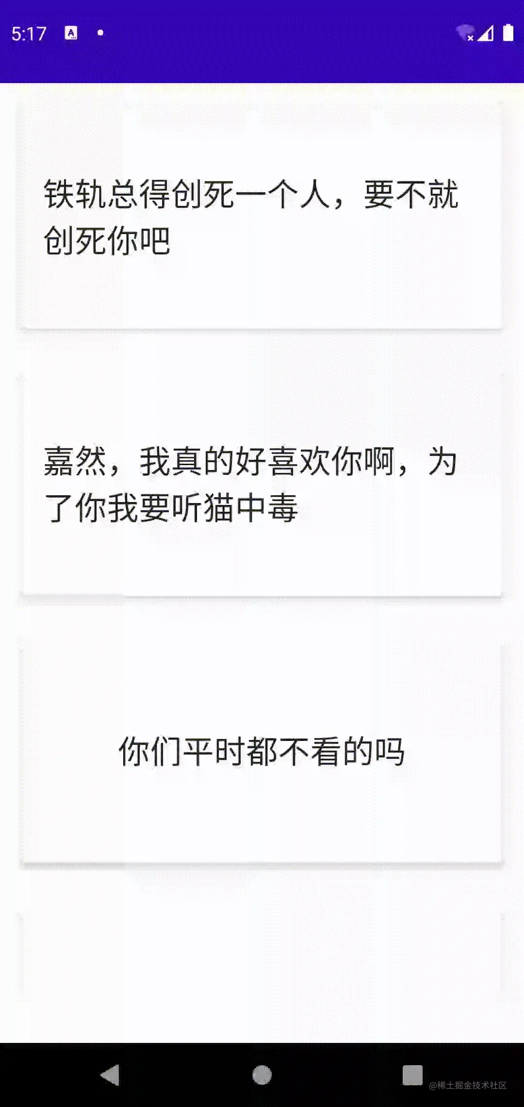 在这个示例中存在着加载动画和列表数据。当我们手指向下滑时,此时如果列表顶部没有数据则会逐渐出现加载动画。与之相反,当我们手指向上滑时,此时如果加载动画还在,则加载动画逐渐向上消失,直到加载动画完全消失后,列表才会被向下滑动。