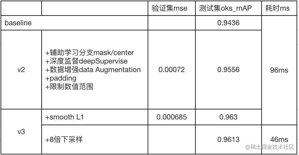 先构建一个baseline,baseline的模型为 moblieNet v3 + fpn + ssh module + keypoints 分支 + dsnt ,其中,都没有使用上述优化策略,使用4倍下采样特征图作为输出。