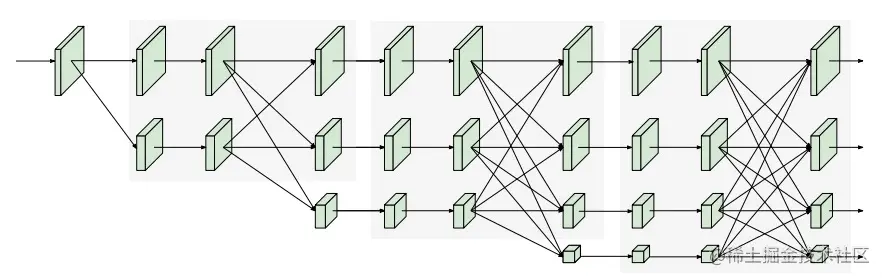 本文出了一个高效的高分辨率网络,是HRNet的轻量化版本,通过将ShuffleNet中的shuffle block引入到HRNet中。同时发现shuffleNet中大量使用了pointwise convolution(11卷积),是计算瓶颈,因此引入contional channel weight来取代shuffle block中的11卷积。网络的整体结构如下图所示。在模型中一致保留高分辨率特征,并不断融合high-level特征。