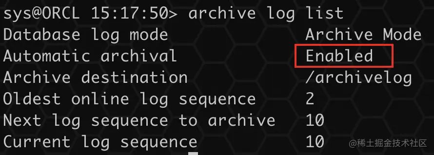 可以通过以下命令查看是否开启归档: