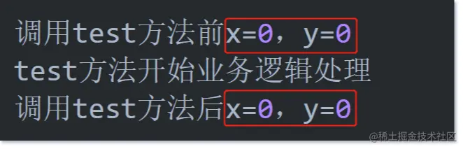 System.out.println("调用test方法前x=" + a.getX() + ",y=" + a.getY());