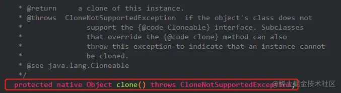 它是java默认提供的用来复制对象的方法,这个方法是 native 修饰的,说明它是对操作系统的底层直接调用的,在理论上,用它来复制对象性能会更好