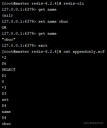可以看出我们的每一个操作都已经记录到 AOF 文件中,我们这边通过重启 Redis 也一样能获取到刚刚存储的数据,说明持久化是有生效的~