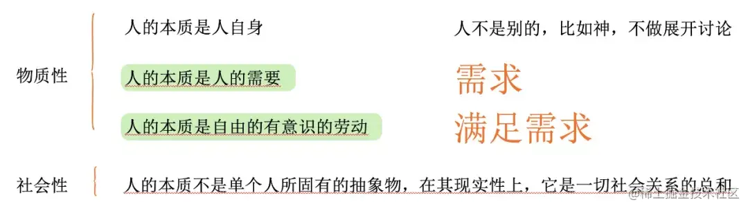 从上面的关于“人的本质”论述的文字,我们可以总结为如下图内容: