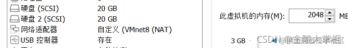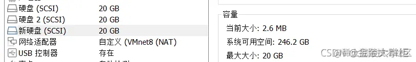 2、在VMware Workstation中为当前linux虚拟机增加一块20G的硬盘;