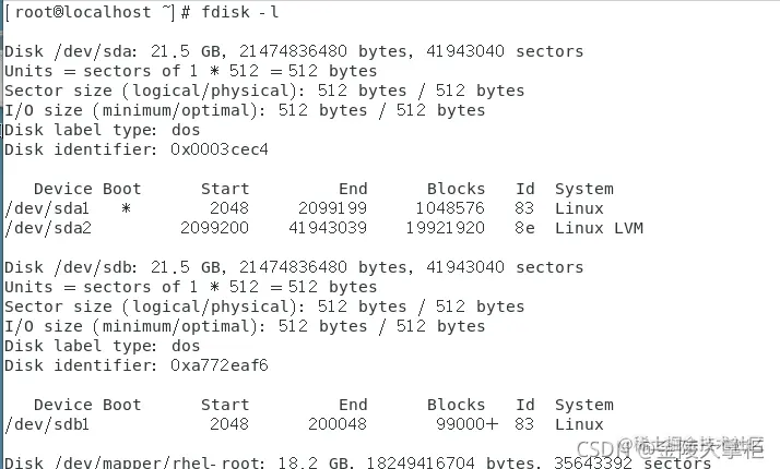 1、检查测试环境当前使用的硬盘,此时为2块20G的硬盘;