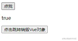 <button v-on:click="func2">点击跳转销毁Vue对象</button>