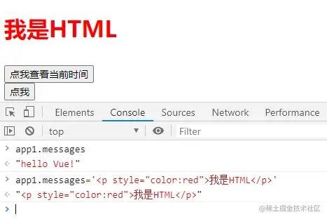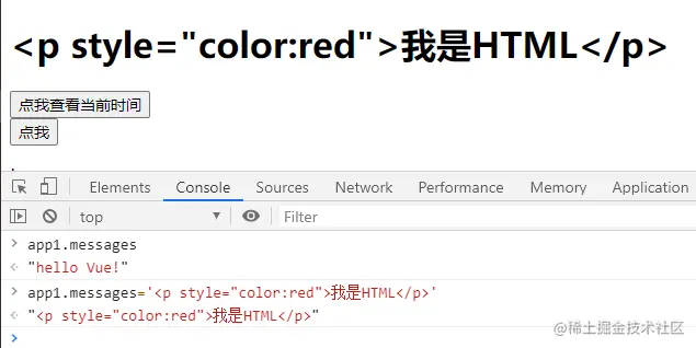 加了 v-html 指令后的效果: