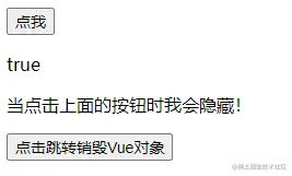 <p v-if="judge">当点击上面的按钮时我会隐藏!</p>