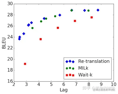 这种流式翻译模型的缺点是它们再次采取极端立场:零擦除需要牺牲 BLEU 和滞后。而不是完全消除擦除,偶尔不稳定的小预算可能会允许更好的 BLEU 和滞后。更重要的是,流式翻译需要重新训练和维护专门用于实时翻译的专用模型。这在某些情况下排除了流式翻译的使用,因为对于像谷歌翻译这样支持 100 多种语言的产品来说,保持精简的管道是一个重要的考虑因素。