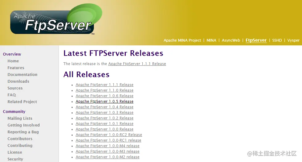 - 根据需要下载对应版本的部署包:mina.apache.org/ftpserver-p…