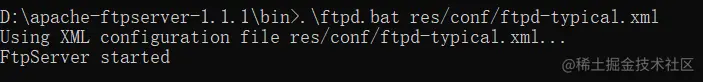 首先启动服务,打开cmd并cd到bin路径执行.\ftpd.bat res/conf/ftpd-typical.xml,看到如下状态说明启动成功
