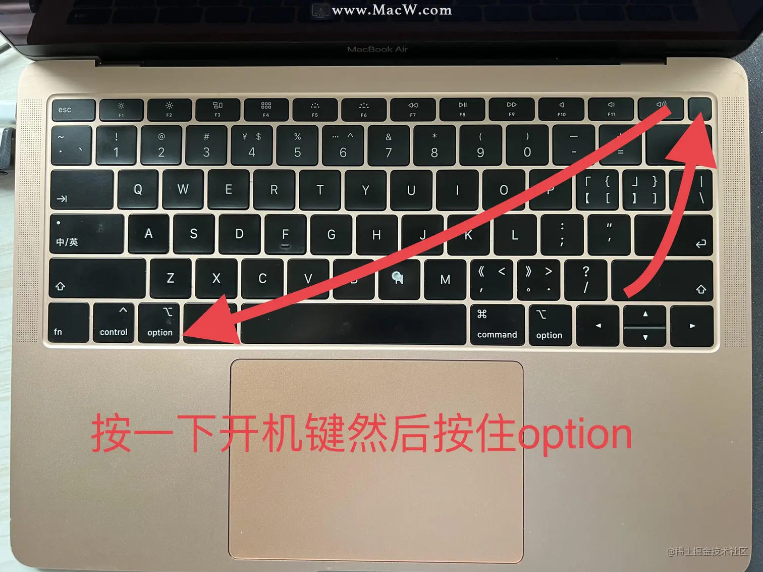 - 修改完成后(没有确定选项)直接按下图操作 重启,重启的同时 按住 option