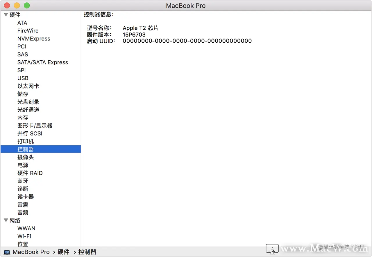 在边栏中,选取“控制器”或“iBridge”,具体取决于所使用的 macOS 版本。