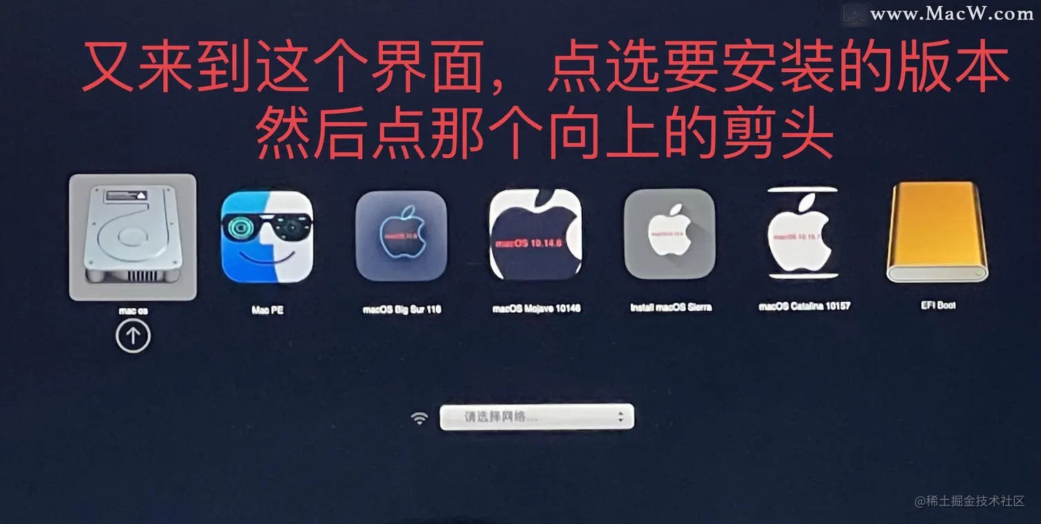选中要安装的系统版本图标,然后点击 那个向上的箭头