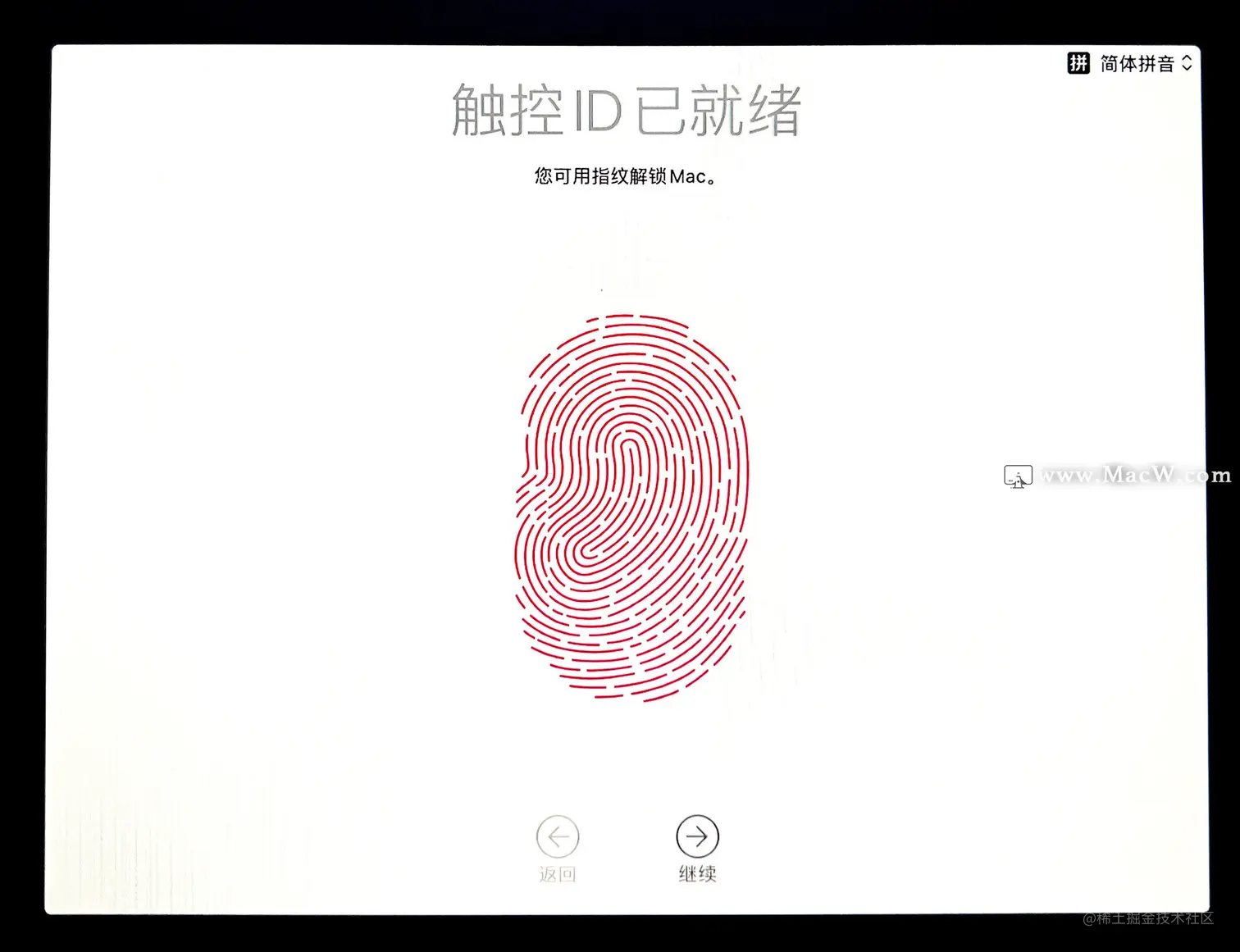 录入指纹信息,如果你是 iMac 可以跳过,小键盘带指纹的 可以现在就录入了
