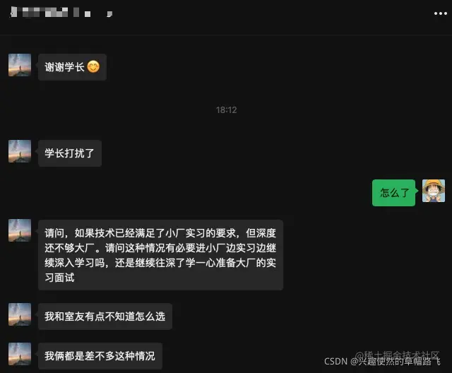 最后,由于篇幅有限,如果有校招求职、学习规划、自学方面的困惑,可以通过公众号(兴趣使然的草帽路飞)加我的交流群,和群里的同届大佬,大厂学长们一起抱团努力,一起交流求职心得,总结学习经验!