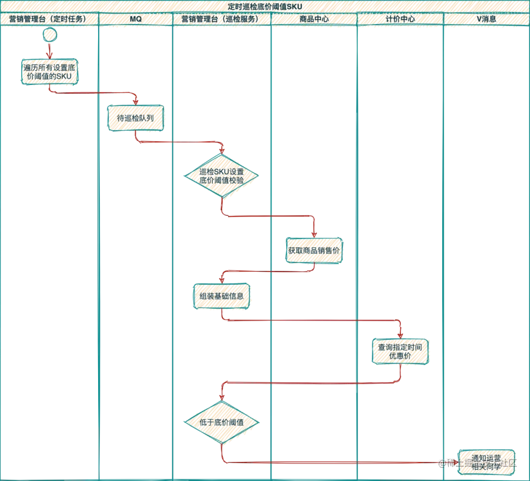 针对所有设置底价阈值商品的巡检工作流程如下: