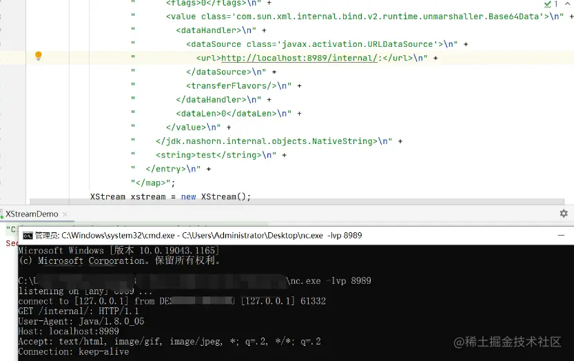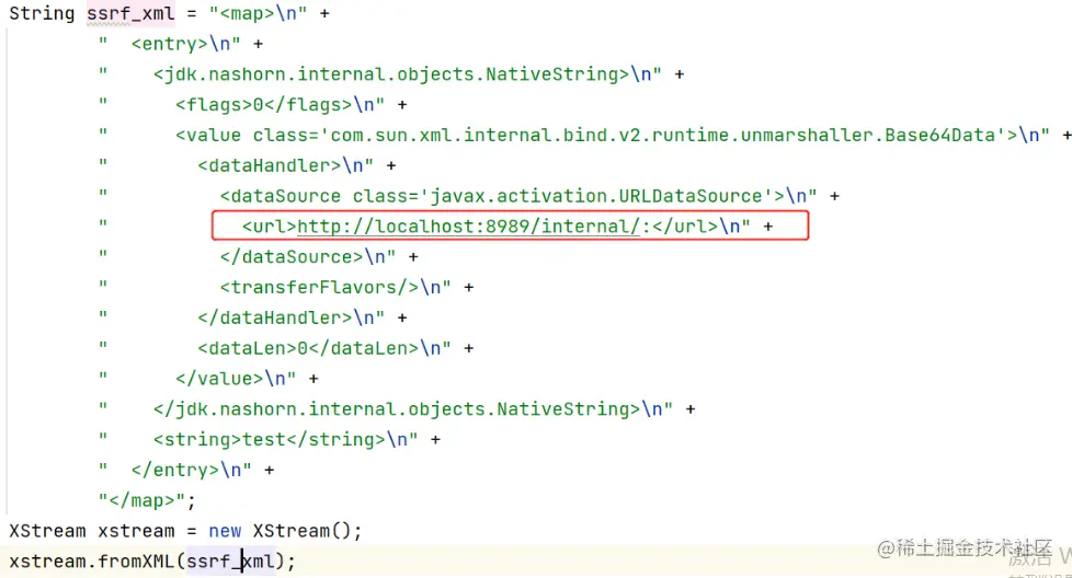 通过对XStream框架整体的分析不难发现,是程序在调用XStream中的fromXML()方法对XML数据进行反序列化的时候,通过绕过XStream的黑名单限制而已输入带有任意命令的xml格式数据,让反序列化产生了非预期对象,造成了任意命令执行的安全漏洞出现。