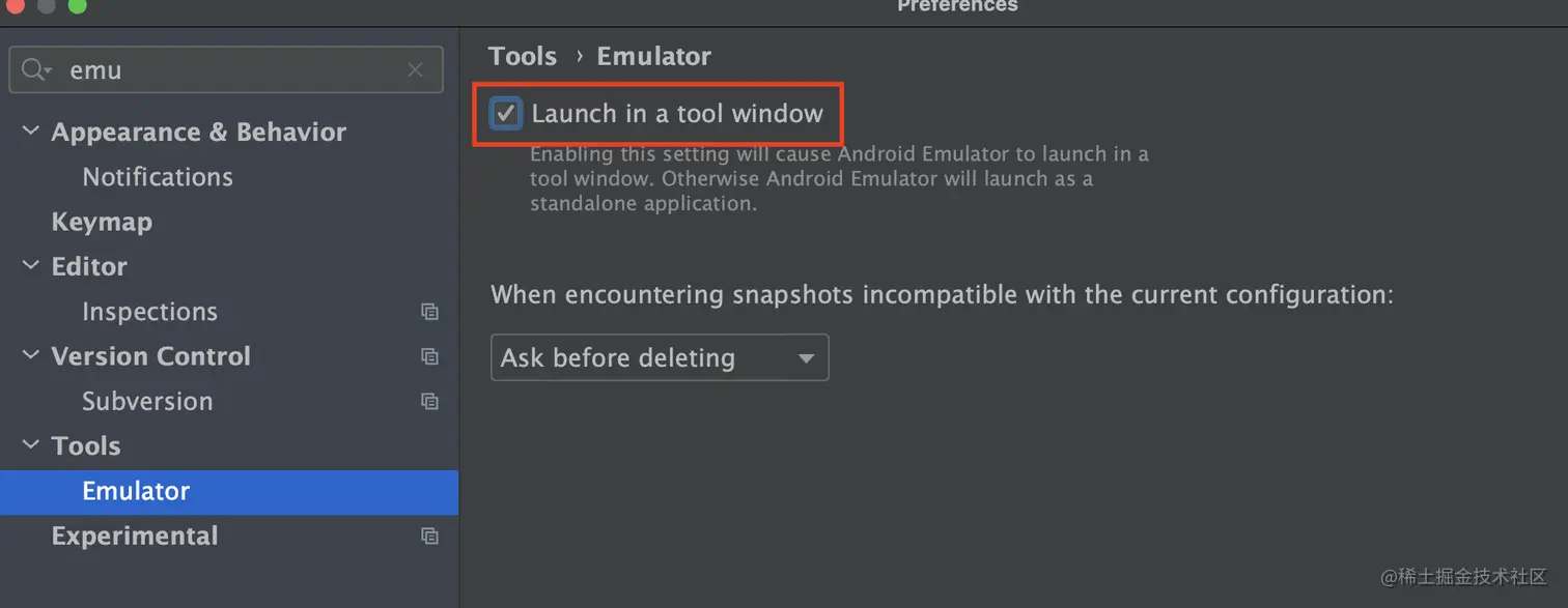 最新版本的AndroidStudio支持模拟器内嵌在里面,但是不知道怎么让他自己出来。