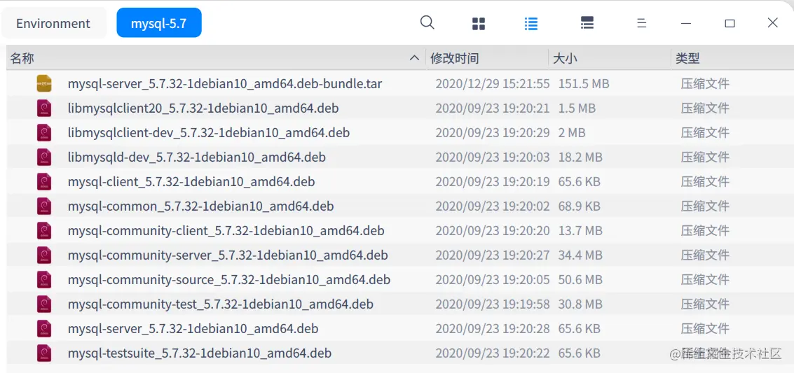 tar -zxvf mysql-server_5.7.32-1debian10_amd64.deb-bundle.tar